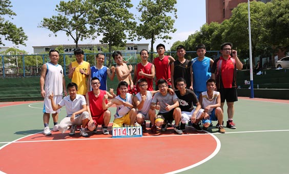 比赛一开始,“告别队”的小伙子们一点也不给老师面子,利用自己无敌的青春活力连续冲击“欢送队”的防线,打出一个8:0的开局。但老师们毕竟经验丰富,稳住阵脚后利用娴熟的配合展开反击,逐渐将比分赶上,双方你来我往,僵持不下。第一节结束时,“告别队”仅以两分的微弱优势领先。第二节开始后,“告别队”做出针对性换人,曾经身为院篮球队队长的新闻系毕业生覃朝湘登场,利用犀利的突破连续取分,身高1米88的院篮球队核心赵心宇在篮下更是为所欲为,其他的球星们也纷纷拿出自己的绝活,外面一个三分,里面一个两分,打得老师们一时难以招架,半场时以60:48领先了12分,第三节开始后不久更一度领先了17分。眼见形势大好,“告别队”的队员们出现了松懈,“欢送队”老师们趁机发动反攻,明星后卫宋德发老师不断策动快攻,院党委书记王洁群老师多次偷袭篮下,副院长刘中望老师的中投屡有斩获,符继成老师内突外投,连连砍分,其他的老师和“欢送队”的外援——两位于今年毕业的研究生代表也在攻防两端频显身手。于是,场上风云突变,“欢送队”得分一路猛涨,到第四节快结束前将比分反超1分,双方最后以108:108进入了加时。在加时赛中,“欢送队”的老师们体力不支,未能保持此前迅猛的攻势,而“告别队”的年轻人们经过调整,暂停回来后便打出了一波攻击高潮,最终以121:114锁定胜局。